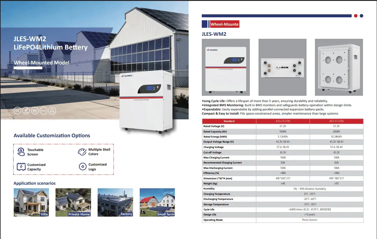 JLES-WM2 Series Wheel-Mounted LiFePO4 Solar Lithium Battery (5.12kWh – 10.24kWh)